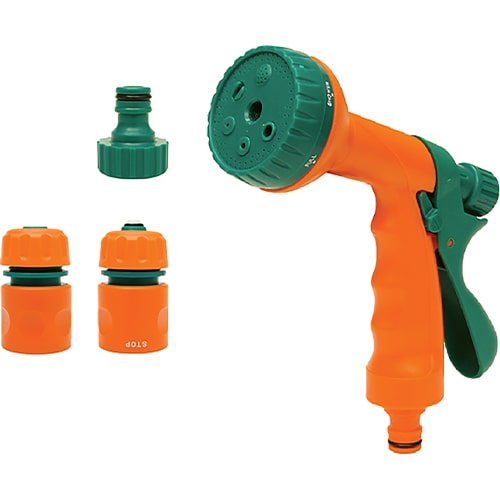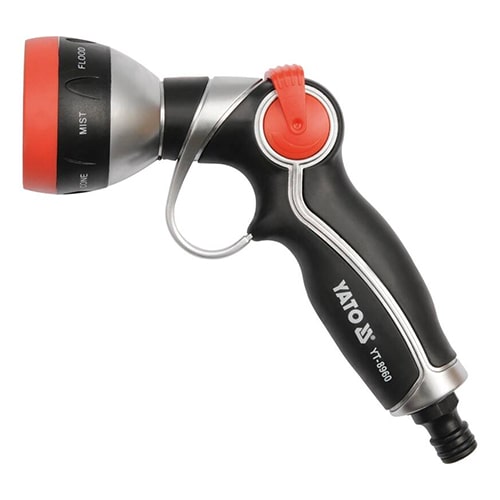 Najmniej skomplikowane modele to zraszacze proste, w których możliwa jest jedynie regulacja strumienia – od zraszania po mocny strumień wody. Wygodniejszą wersją zraszaczy ręcznych są zraszacze pistoletowe. Posiadają one uchwyt, spust i głowicę z regulowanymi dyszami. Niektóre pistolety zraszające posiadają nawet 10 różnych rodzajów strumienia oraz możliwość regulacji wypływu wody.
