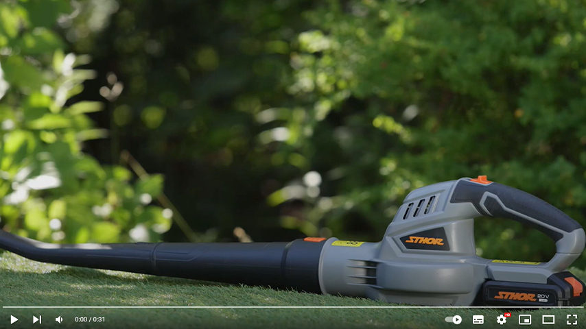 Dmuchawa zasilana akumulatorem 20 V platformy Sthor. Przeznaczona do usuwania zanieczyszczeń z podjazdów, ścieżek, garaży itp. Lekka konstrukcja umożliwia użytkowanie dmuchawy jedną ręką. Wyjmowana rura dyszy ułatwia przechowywanie.