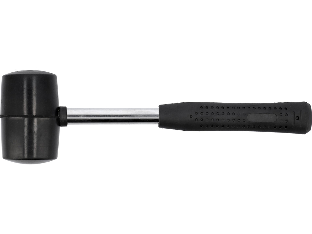 Чук, изработен от твърда черна гума, монтиран на устойчива на повреди дръжка от стоманена тръба.