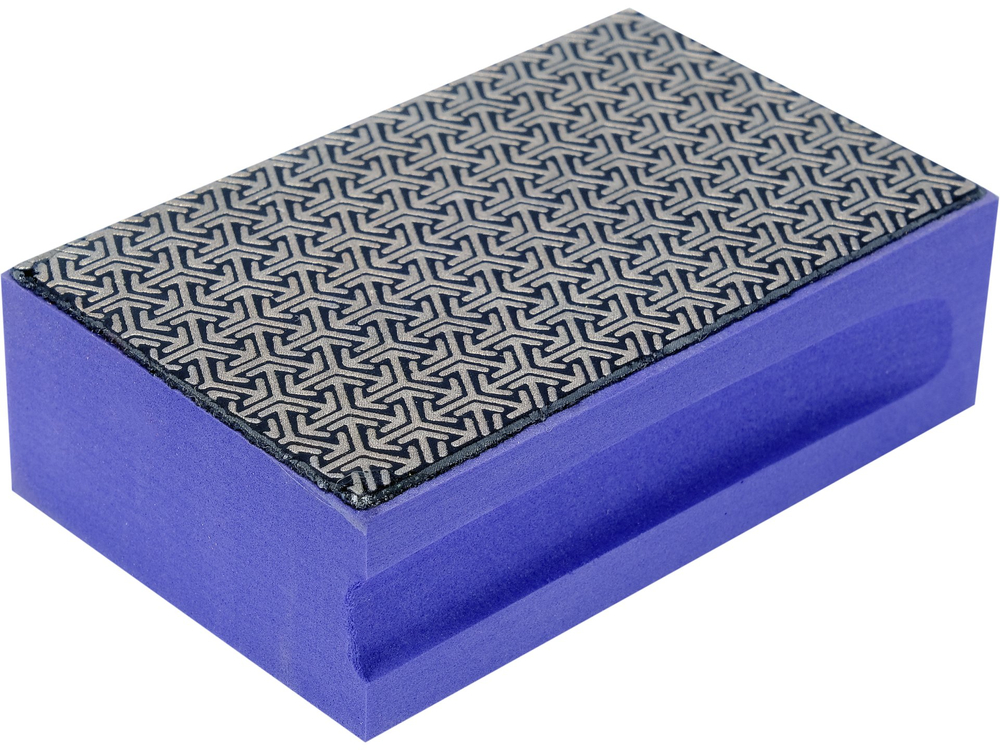 Гъвкаво гумено кубче (гъба) за шлайфане на стъкло, мрамор, гранит и керамика. Метална плоча с диамантена зърнометрия G-400, залепена за работната повърхност.