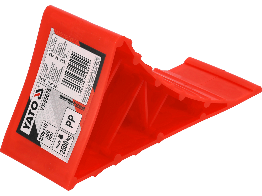 Клинът предпазва от неконтролируемо движение на превозни средства и ремаркета. Изработен е от висококачествена пластмаса, подсилена с ребра в напречните краища. Разполага с противоплъзгащи се пластини и нарези, които осигуряват по-добро сцепление на колелото и значително затрудняват плъзгането на клина по повърхността. Полезен продукт за всеки автомобил, гараж, автосервиз и работилница за вулканизация.