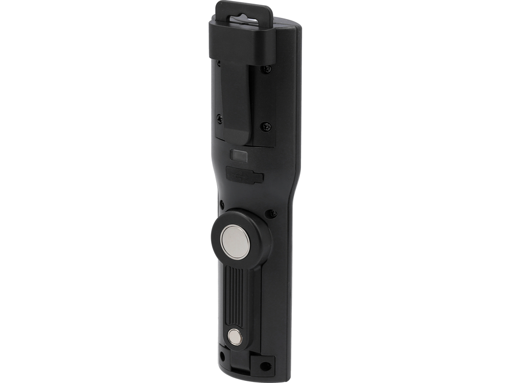 Лека преносима лампа за работилница с четири режима на работа, които ви позволяват да адаптирате светлината към извършваната дейност и нивото на батерията. Клипс, магнит и кука за окачване на лампата са допълнителен бонус.