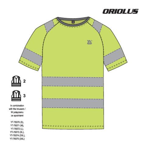 Сертифицираната предупредителна тениска от серията Oriolus е част от работното облекло, предназначено за работа в среда с повишен риск от блъскуване от превозни средства, машини или други движещи се обекти. Тя е проектирана с цел осигуряване на висока видимост на потребителя в пълен обхват от 360°, както през деня, така и през нощта, което е от съществено значение за безопасността на работата в зоните на движение.