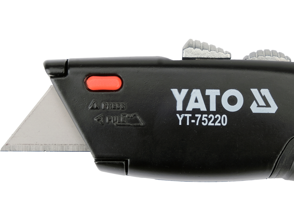 Нож с двойна система за острието, предназначен за монтажни, складови и завършващи работи, където е необходимо както линейно рязане, така и безопасно разрязване на опаковъчни материали. Корпусът е изработен от алуминиева и цинкова сплав с елементи от ABS, които осигуряват здравина на конструкцията и удобен захват. Използването на два типа остриета позволява на инструмента да се приспособи към вида материал без необходимост от смяна на оборудването.