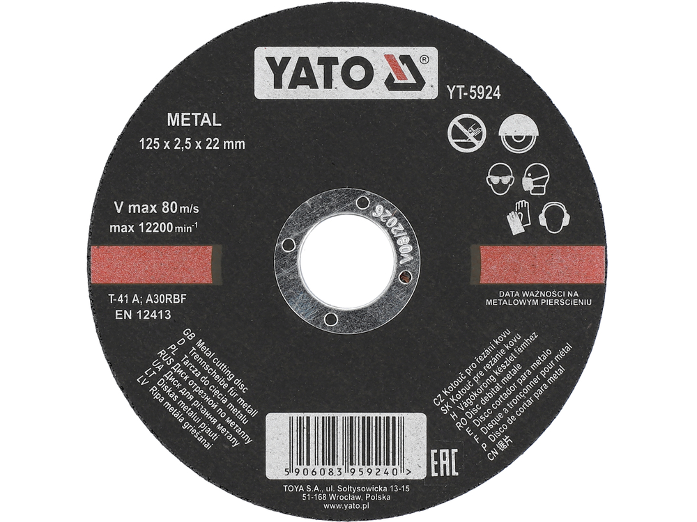 Kotouč na řezání kovů značky YATO je vyroben z vysoce kvalitního brusného materiálu vhodné tvrdosti a granulace.