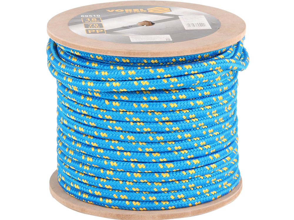 - Lina pleciona 18 mm/70 m z 24 włókien polipropylenowych uzupełniona polipropylenowym wytrzymałym na zrywanie rdzeniem.