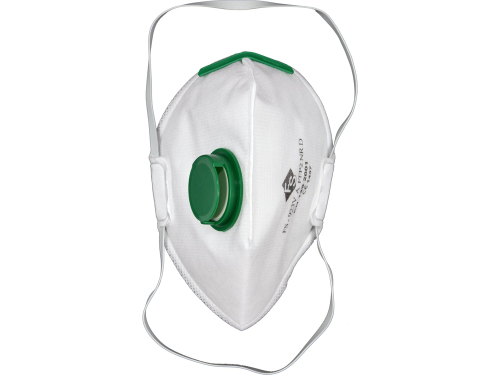 Plochá filtrační polomaska třídy ochrany P2 s výdechovým ventilem. Určena k ochraně dýchacích cest před:
