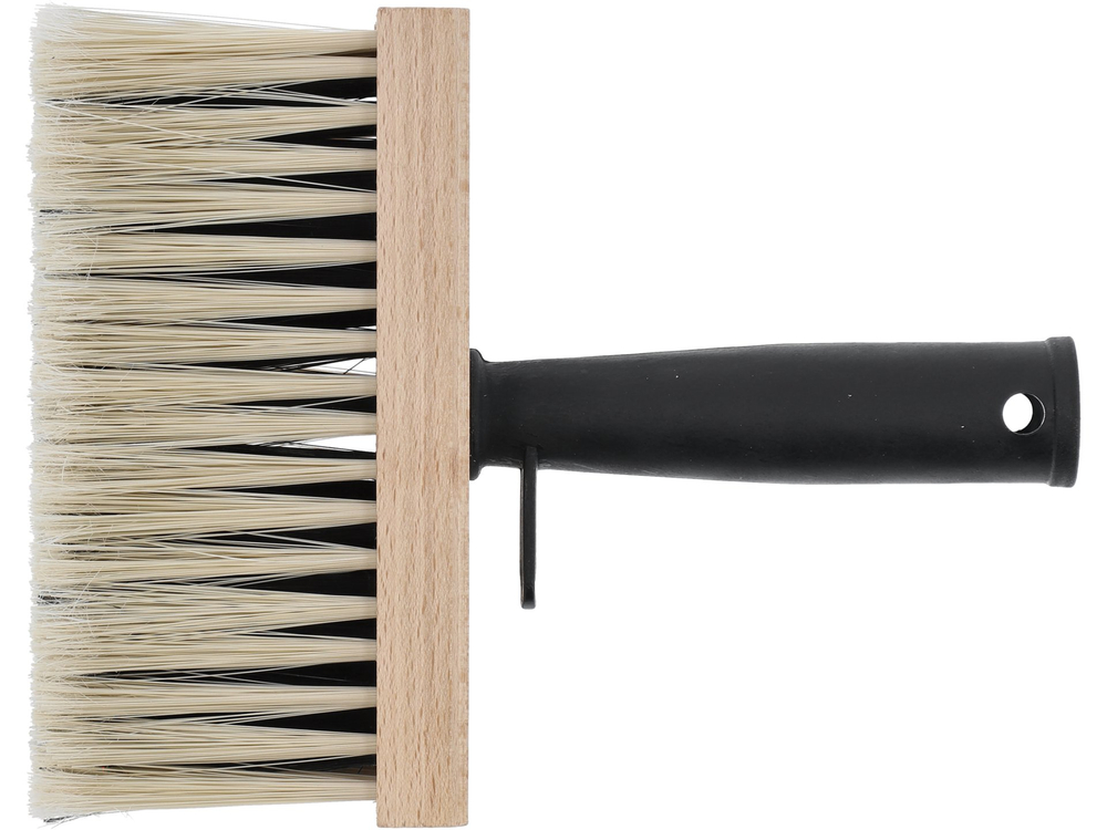 150 mm široký stolní kartáč ze štěpených plastových štětin. Vhodný zejména k nanášení základních nátěrů, impregnačních prostředků, studených hydroizolačních hmot a dalších stavebních materiálů na velké a nerovné plochy.