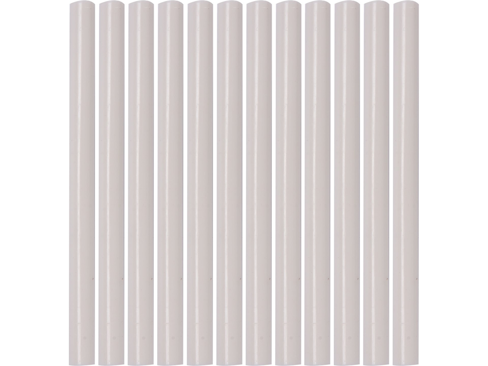 Bílé tavné lepidlo o průměru 7,2 mm a délce 100 mm. Balení obsahuje 12 lepicích tyčinek.