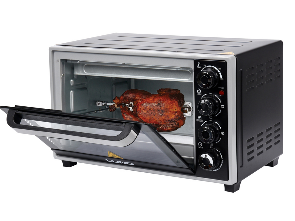 Silný a prostorný multifunkční troub s otáčivým grilem a termooběhem. Intuitivní ovládací panel s 4 knoflíky umožňuje nastavení teploty, času pečení a termooběhu podle připravovaných jídel.