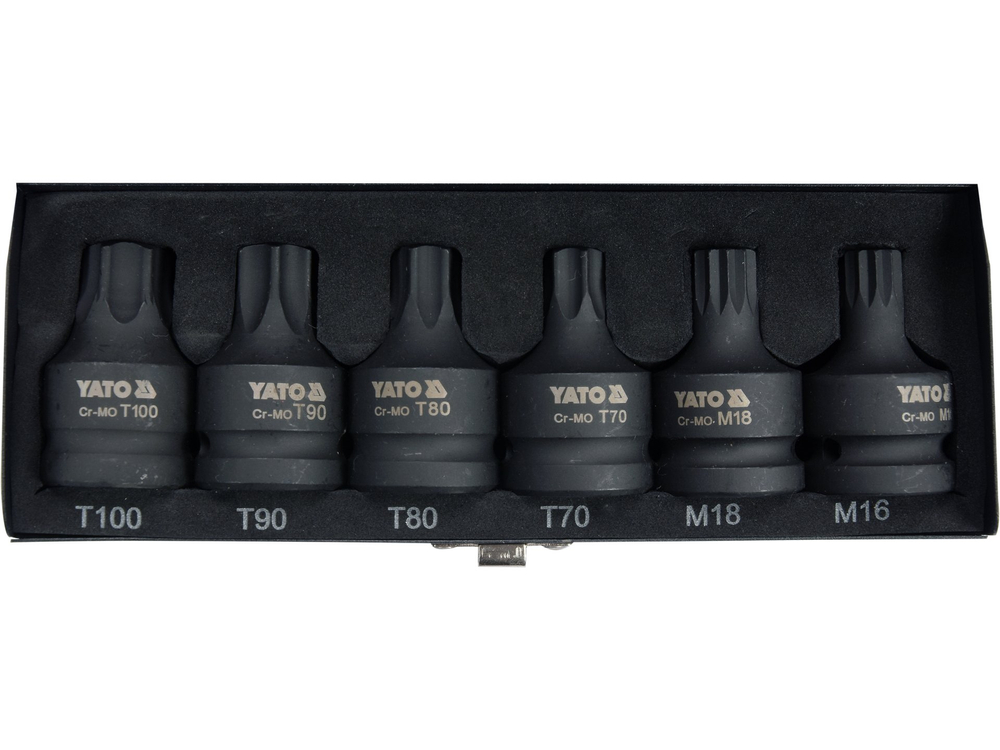 Šestidílná sada rázových klíčů torx a drážkových klíčů doporučených pro automobilový průmysl a mechanické práce.