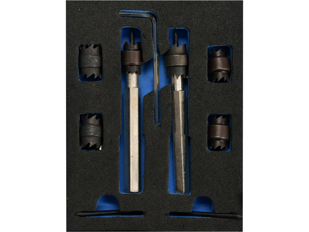 Profesionální sada určená k rychlému odstraňování svarů, švů a svárů karoserie. Obsahuje 6 oboustranných korunkových fréz, dvě upínací sklíčidla a 2 polohovací čepy.