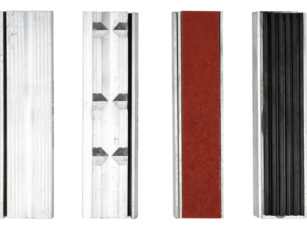 Sada vyměnitelných čelistí / krytů pro svěrák l-125 mm. Použitím vhodných měkkých krytek chráníme upínaný materiál před poškozením.