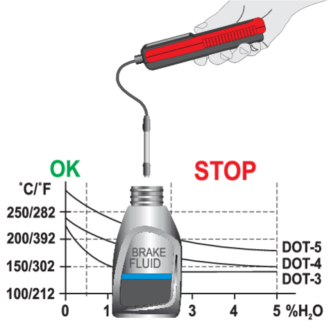 pro kontrolu kvality brzdové kapaliny DOT 3, DOT 4 a DOT 5.1