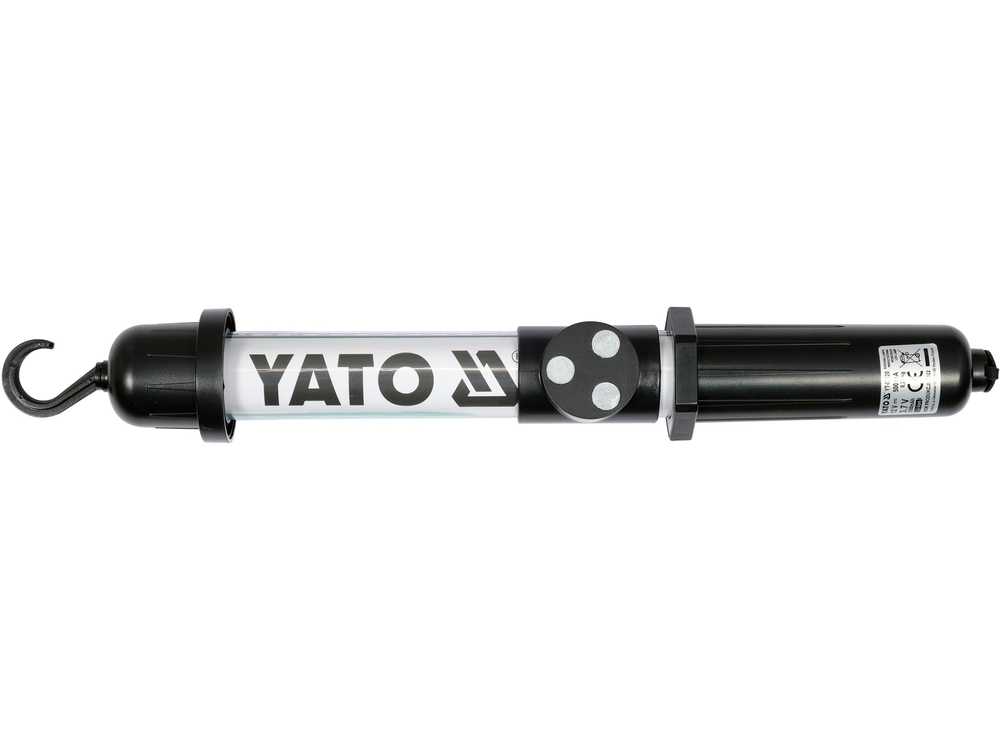 Univerzální bezdrátová dílenská lampa zavěšená na háku nebo připevněná pomocí magnetu.