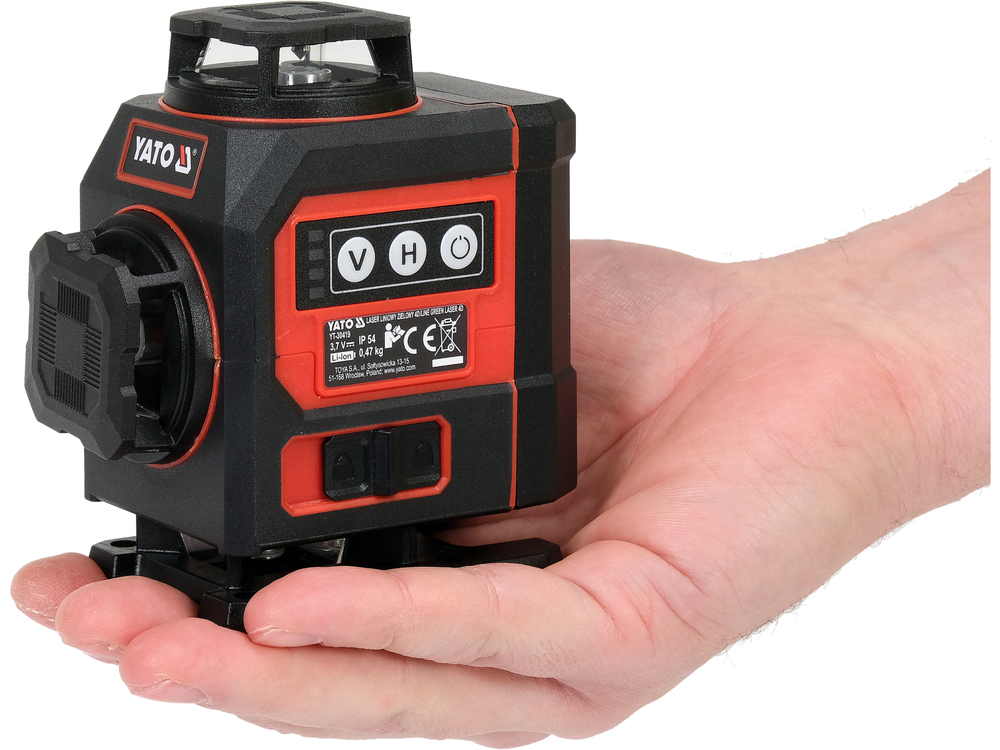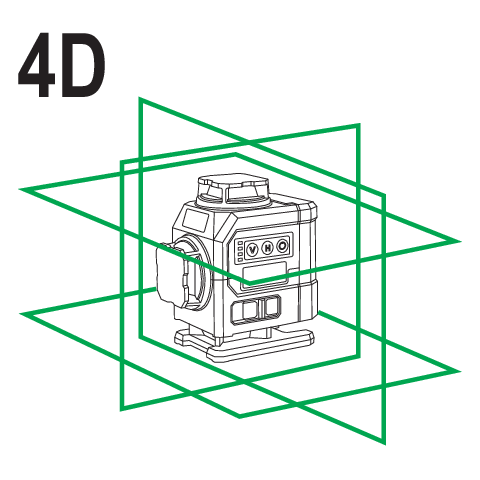 Samonivelační čtyřplošný 4D laser v mini verzi se zeleným paprskem. Vrhá 16 čar, čtyři na rovinu. Umožňuje v reálném čase horizontální a vertikální na každé stěně současně.