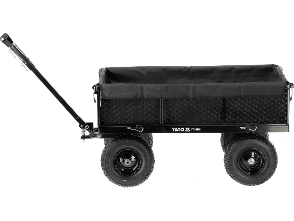 - speciální konstrukce oje umožňuje připojit vozík k zahradní technice, jako jsou traktory, a fungovat tak jako přívěsný vozík