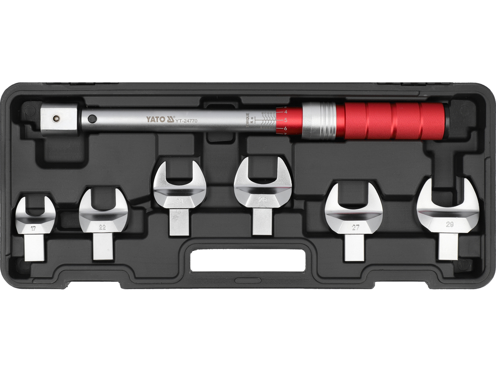 Praktický sada dynamometrických klíčů s vyměnitelnými hlavicemi pro klimatizační a chladicí systémy. Usnadňuje servisní práce, poskytuje velkou funkčnost a efektivitu při utahování závitových spojů s přesně stanoveným momentem.