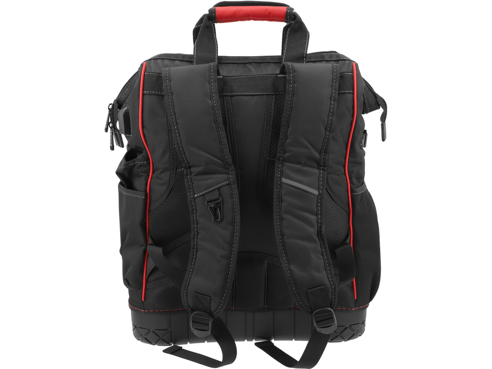 Praktický, voděodolný a velmi odolný batoh vyrobený z vysoce kvalitního zpevněného nylonu. Skvěle se hodí k přenášení nářadí nebo zařízení nezbytných při práci. Dodatečné kapsy uvnitř a na vnější straně umožňují třídění a udržování pořádku v přepravovaných předmětech, stejně jako skrytí osobních věcí, jako jsou peněženka, telefon, dokumenty, v oddělených oddílech.