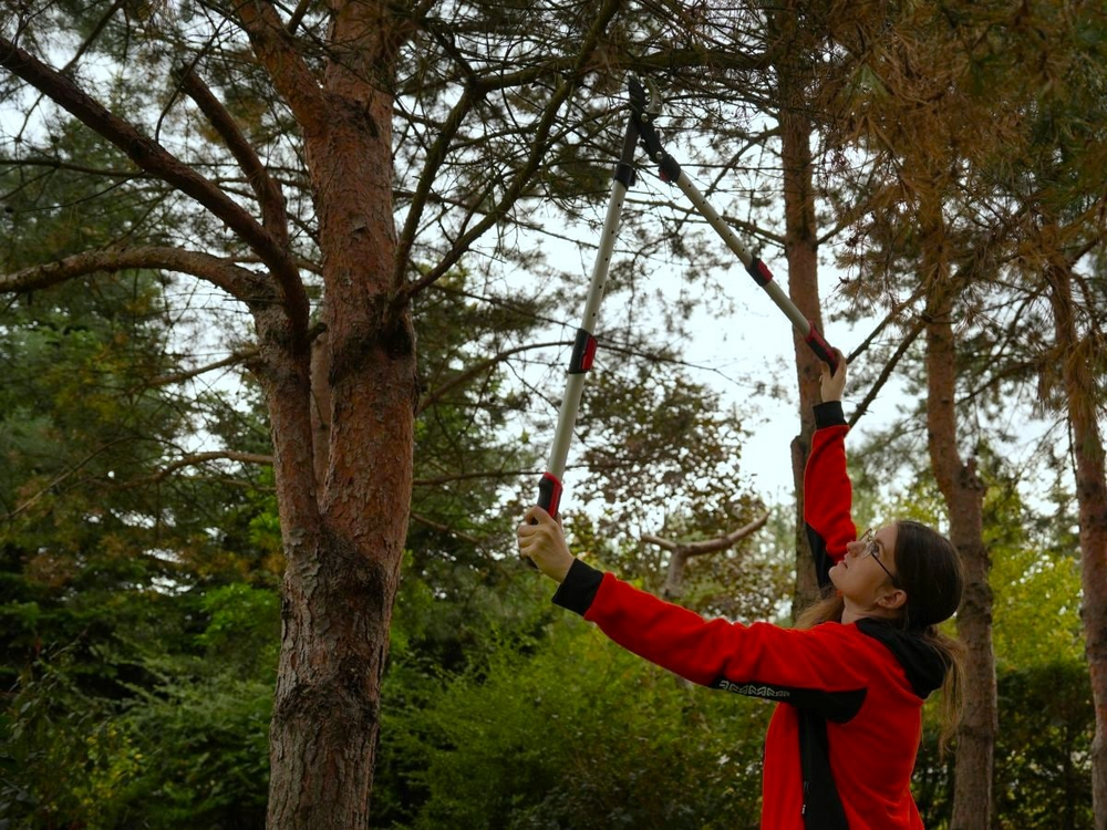 Teleskopické rukojeti s nastavitelnou délkou od 660 do 910 mm zvyšují dosah práce, umožňují stříhat větve ve vyšších nebo hlubších částech koruny stromů bez nutnosti použití žebříku. Čepel z kalené oceli SK5, v horní části pokrytá povlakem PTFE, zajišťuje přesný, čistý střih s minimálním třením. Díky tomu nářadí pracuje plynule a čepel si dlouho udržuje ostrost. Lehký hliníkový rukojeť s prvky PP a měkkým TPR zaručuje pevný úchop a stabilitu, a tlumiče účinně tlumí rázy, zvyšujíce komfort a ergonomii.