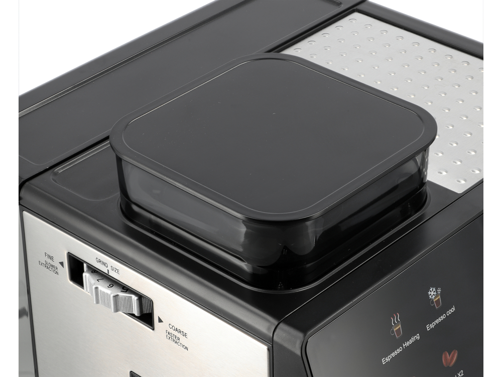 - Regulovatelný systém mletí kávy - 20 úrovní regulace mletí, přizpůsobených různým způsobům přípravy kávy. Patentovaný systém mletí Anti-Clog Grinding System™ předchází zablokování kávy. Vestavěný mlýnek s žroutovým mlecím zajišťuje rovnoměrné mletí zrn, vyvolávající plnost aroma a chuti čerstvě připravené kávy. Přesná konstrukce minimalizuje riziko zablokování kávy a zaručuje spolehlivý provoz při každém louhování. Výkon mlýnka 150W