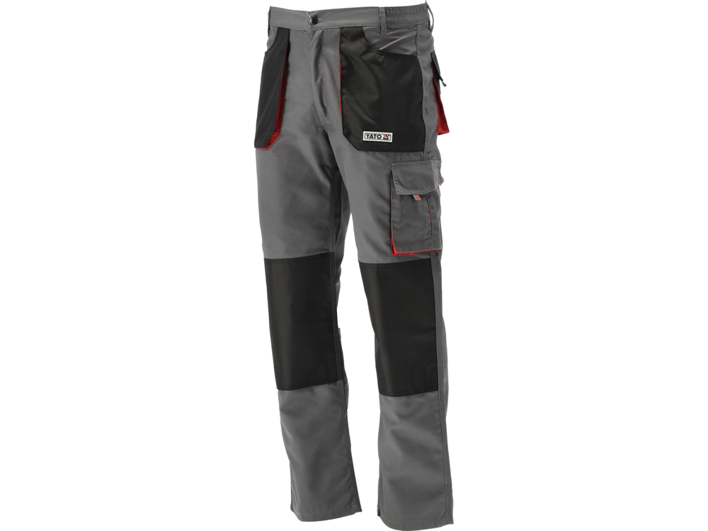 - Spodnie robocze uszyte z grubego odpornego na rozdarcia materiału.