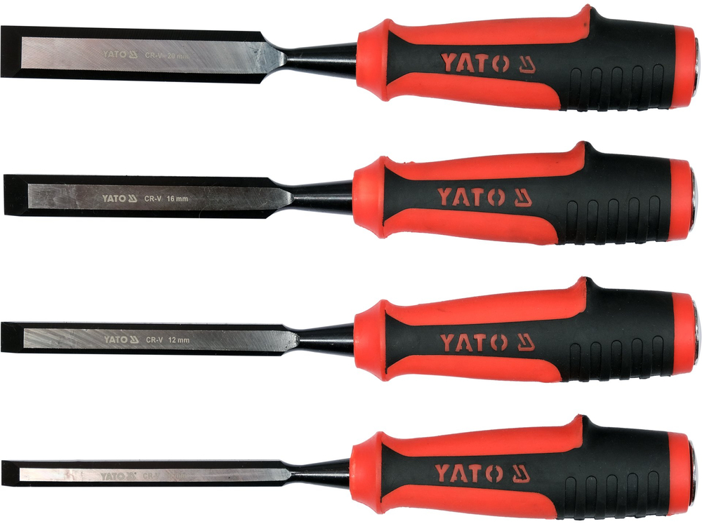 - Zestaw czterech dłut stolarskich z rękojeściami z tworzyw sztucznych.