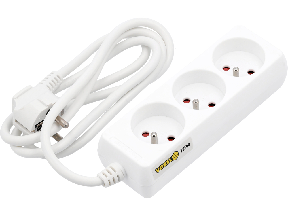 - Klasyczny przedłużacz listwowy z 3 gniazdami z uziemieniem - typ francuski. Przewód H05VV-F 3G1,0mm2. Długość 1,5m. Obudowa gniazd z tworzywa sztucznego. Kolor biały.