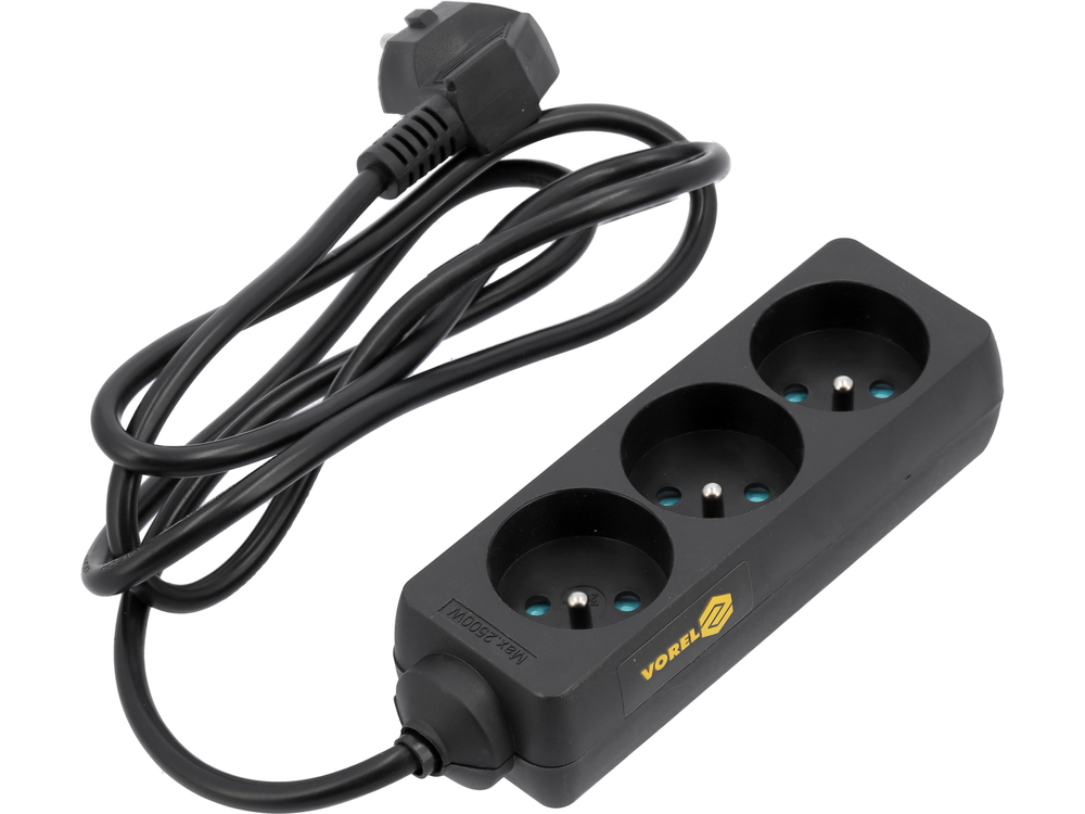 - Klasyczny przedłużacz listwowy z 3 gniazdami z uziemieniem - typ francuski. Przewód H05VV-F 3G1,0mm2. Długość 1,5m. Obudowa gniazd z tworzywa sztucznego. Kolor czarny.