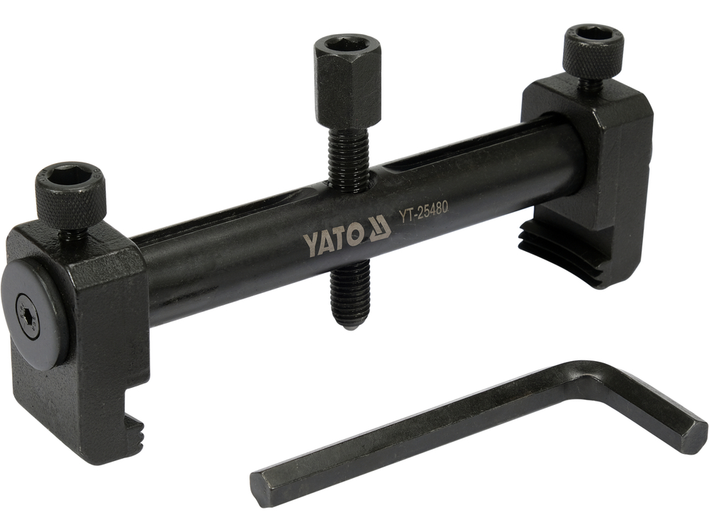 Professional puller for multi -lines, multi -line and alternators, air conditioning aggregates, water pumps, crankshaft, etc. The range of supported diameters up to 165 mm. It has precise cuts on the shoulders - blocked with special screws. • Small dimensions allow work in hard to reach places • Crides on the paws of the welt correspond to the grooves on the circle, which prevents damage • A puller made of hardened, hardened steel • work range 40 mm - 165 mm • Pressed paws pressed and blocked with knobs • IMBUS included in the set for blocking arms automotive workshops, industry - welt - Allen key