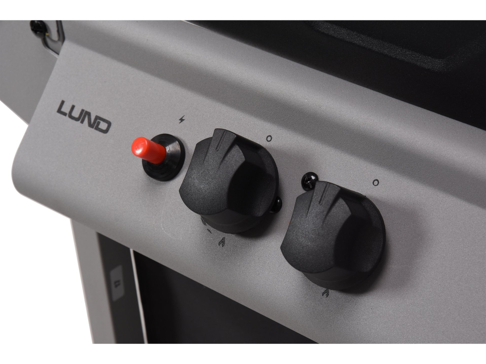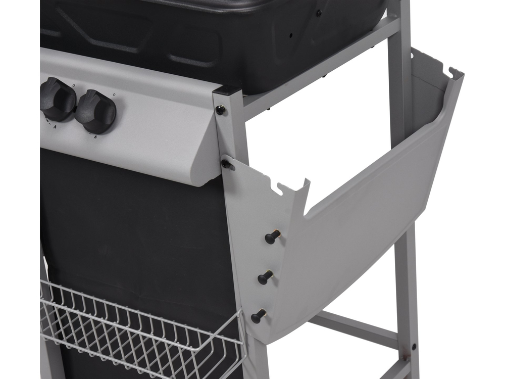 Functional and compact gas grill with 2 burners for preparing food outdoors