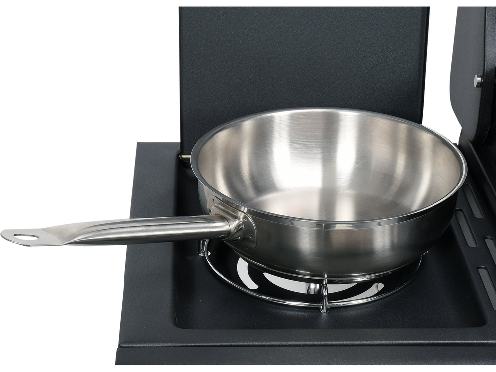• Side burner allows you to cook or heat soup, prepare sauces, boil water for tea.