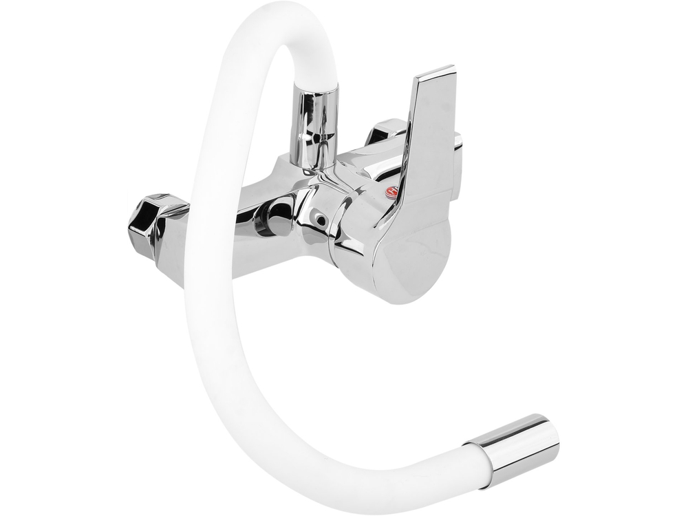 WALL MOUNTED KITCHEN FAUCET WITH WHITE FLEXIBLE SPOUT