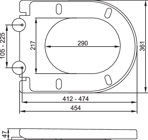 - screw mounting from above makes fixing the seat and adjusting it convenient and hygienic