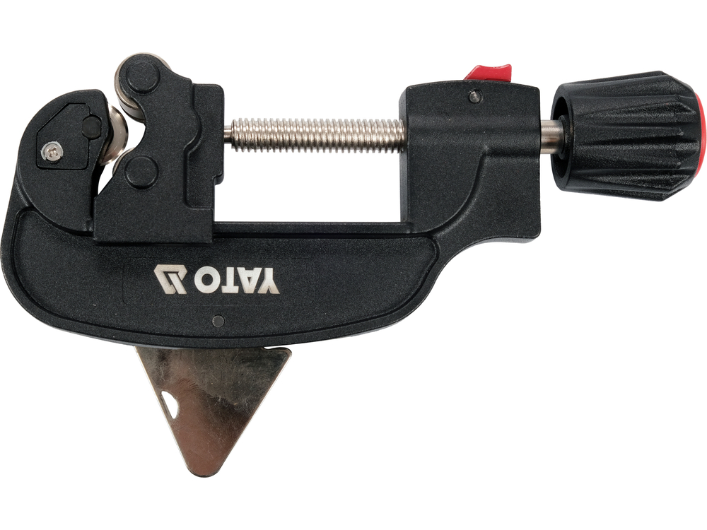 Speed-adjustable cutter designed for copper pipe, thin-walled brass and aluminum pipe, and plastic pipe. Allows quick adjustment to pipe diameters from 16 mm to 54 mm.