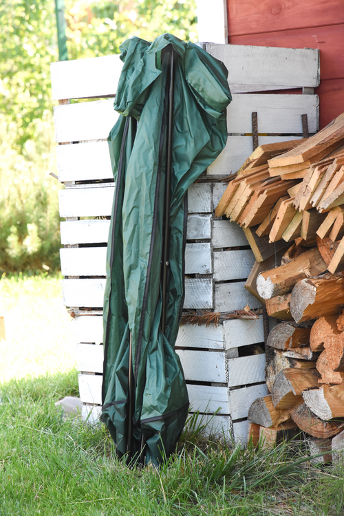 Foldable garden basket, helpful for cleaning work. Features a durable bag attached to the frame with Velcro straps.