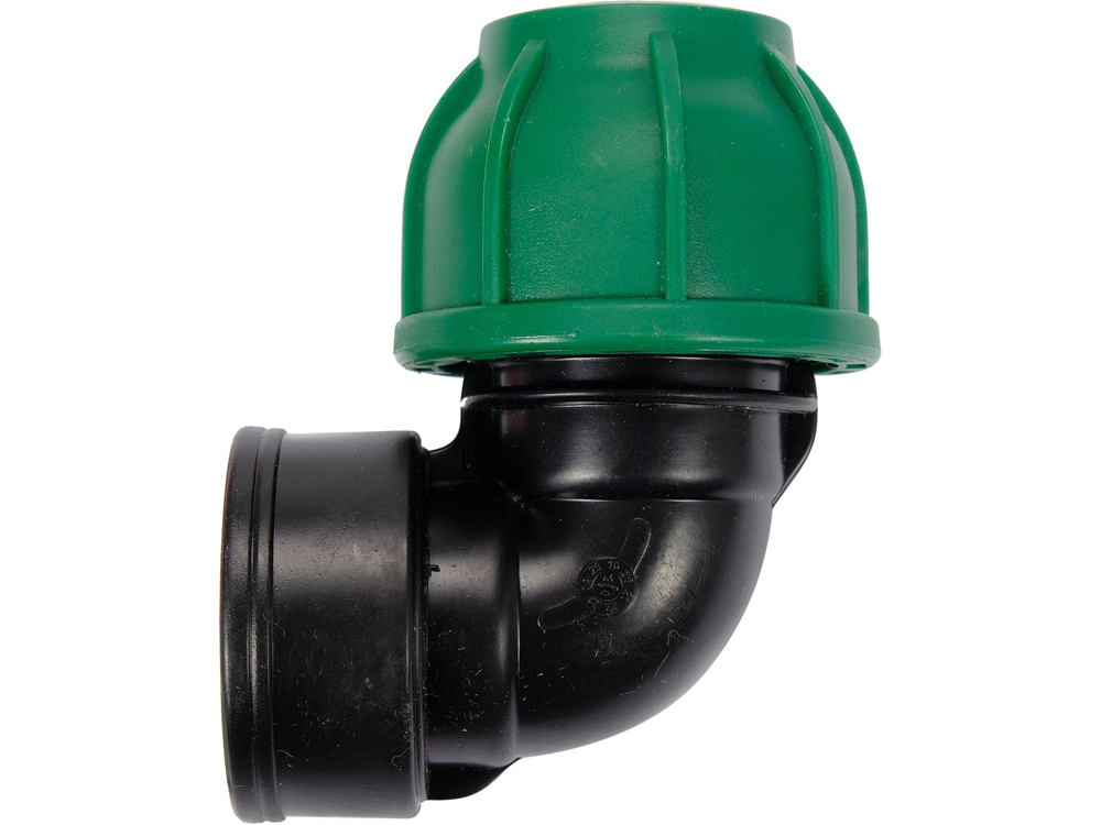 Elbow designed for connecting PE pipes in water installations.