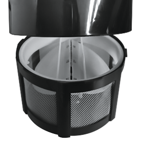 - An aspiration fan creates a strong airflow to draw insects into the device and then trap them in the container without the possibility of escape