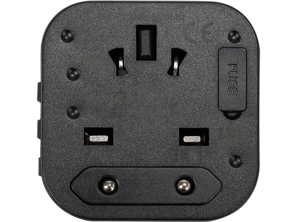 The mains voltage in most countries using the Type A, B and I outlet standard is different from the European standard. The adapter does not convert 230V mains voltage to 110V. Devices that are not suitable for AC 100-250 V may not work properly.