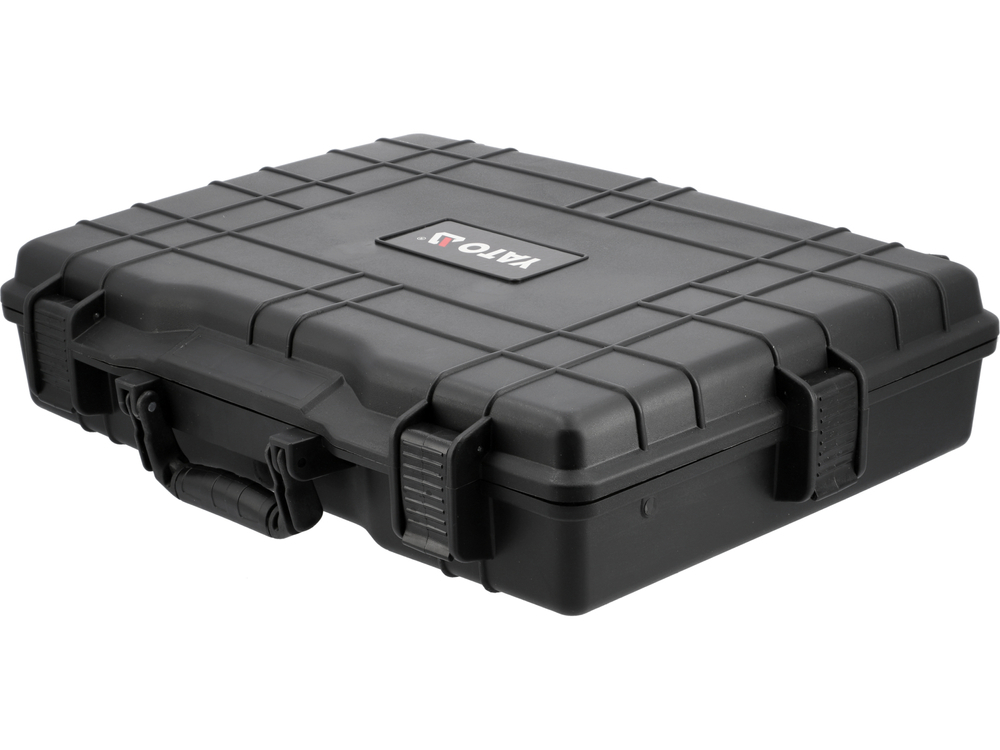 The case is airtight, waterproof and dustproof, resistant to many chemicals and corrosion. Made of flexible polypropylene in accordance with resistance class IP55. It features an effective sealing system, enhanced by a decompression valve for pressure equalisation during air transport. Adapted for padlock closure. The interior of the case is filled with pre-cut sponge, prepared for modelling recesses for specific products, e.g. tools, photographic equipment or measuring equipment.
