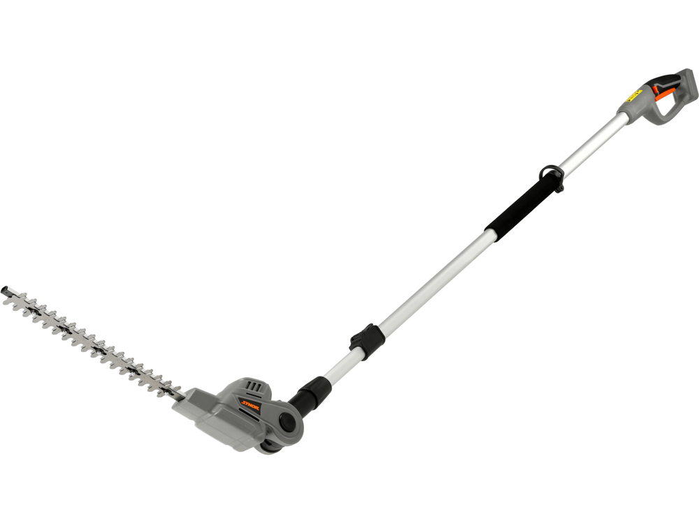 The long-reach telescopic hedge trimmer allows for easy shaping of tall and wide hedges and comfortable working from a distance without damaging flower beds. The adjustable head angle makes it possible to give the perfect geometry to the shrubs. The telescopic handle makes the shears easier to transport and store. The non-slip handle allows a secure grip while working. The shears are powered by a battery that matches the Sthor 20-volt system series.