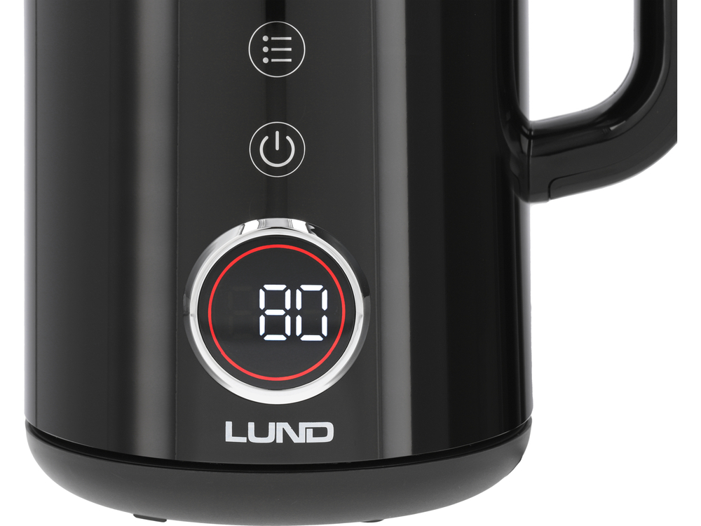 Electric kettle with a capacity of 1.7 litres. With its minimalist form, black colour and large display, the kettle will blend perfectly into a modern interior. With a digital control panel and LED display, it allows you to set the water temperature precisely from 40°C to 100°C. The double walls ensure that the kettle stays cool on the outside, while the concealed stainless steel heating element guarantees efficient heating. The keep-warm function will keep the water hot for up to two hours. The kettle has a convenient 360° swivel base, automatic shut-off and overheat protection for added safety. The large opening makes pouring water and cleaning easy, and the removable mesh filter keeps the water clean.