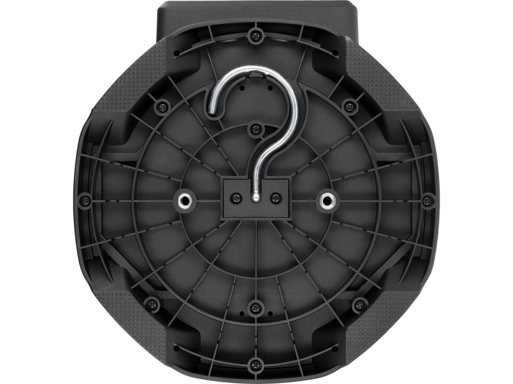 Built-in hook allows hanging the spotlight in a convenient place, while the hole in the base allows mounting it on a tripod. It can also be placed directly on the ground thanks to a stable, scratch-resistant base.