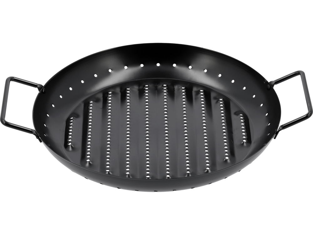 - lightly ribbed surface of the pan prevents excessive food sticking. Numerous holes in the base and on the side provide better heat and smoke circulation and more efficiently drain excess fat