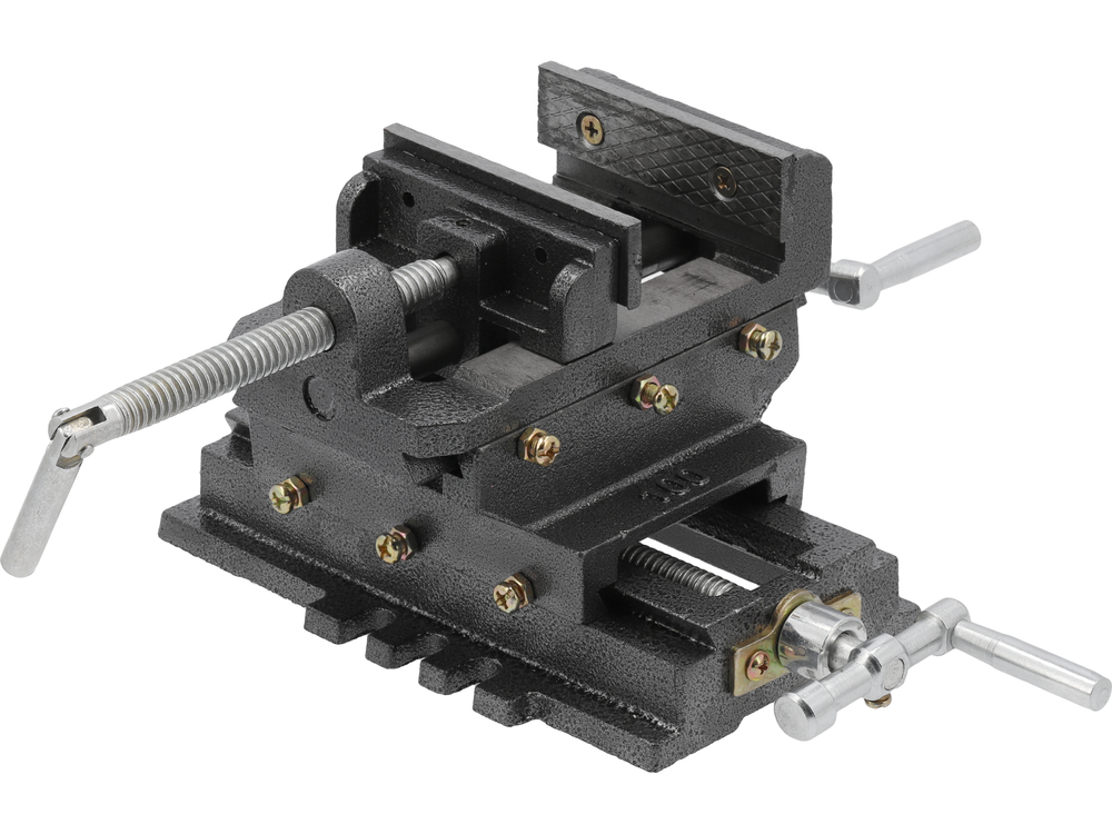 Cross machine vise equipped with two-way pull screws allows work in vertical and horizontal planes. It ensures stabilization of processed materials in construction, welding, locksmith, carpentry, etc. Works permanently attached to the workbench.