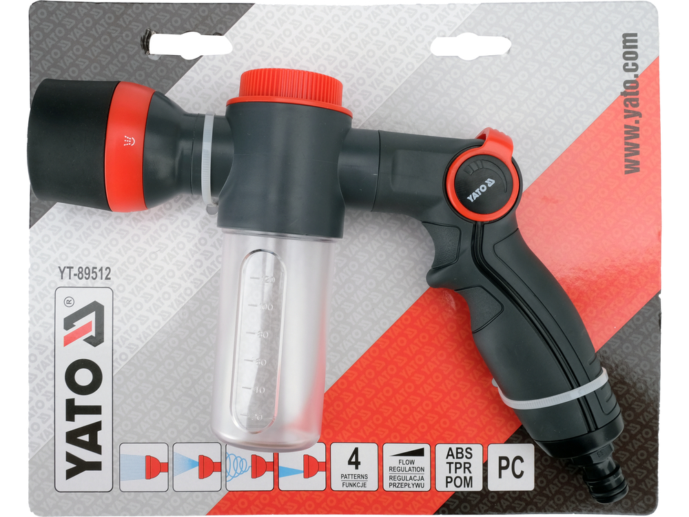 Solid and functional watering gun designed for watering plants and cleaning various surfaces. Equipped with 4 types of water streams and a built-in dispenser for cleaning agents or liquid fertilizers, it ensures versatility and ease of use.