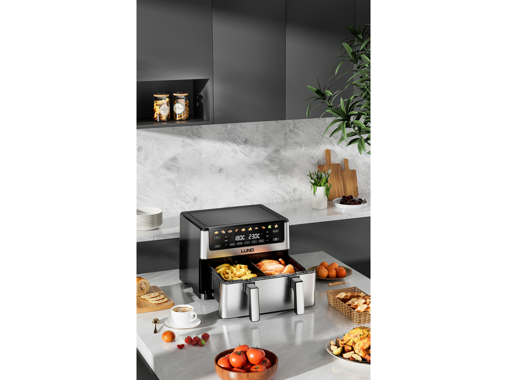 A multifunctional, oil-free fryer with a capacity of 10 liters is a practical device that makes it easier to prepare meals for the whole family every day - from crispy fries to delicately roasted vegetables and juicy meats. With 10 automatic programs and a wide temperature range of 40-240 °C, it is easy to adjust the cooking method to the type of dish, obtaining aromatic and tasty meals without excess fat.