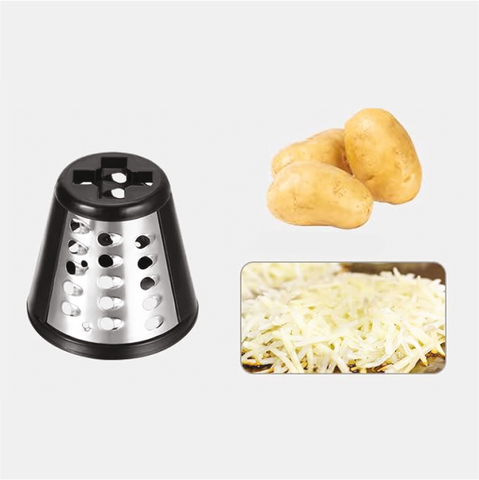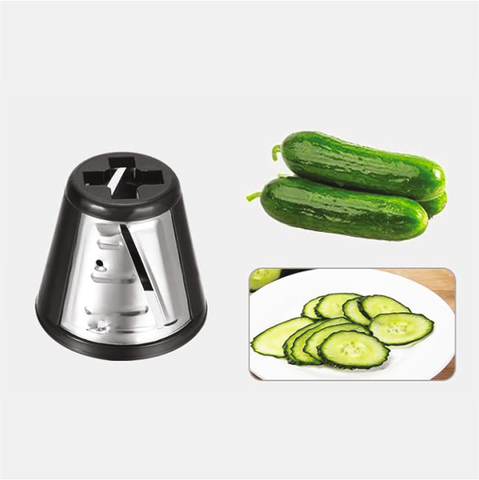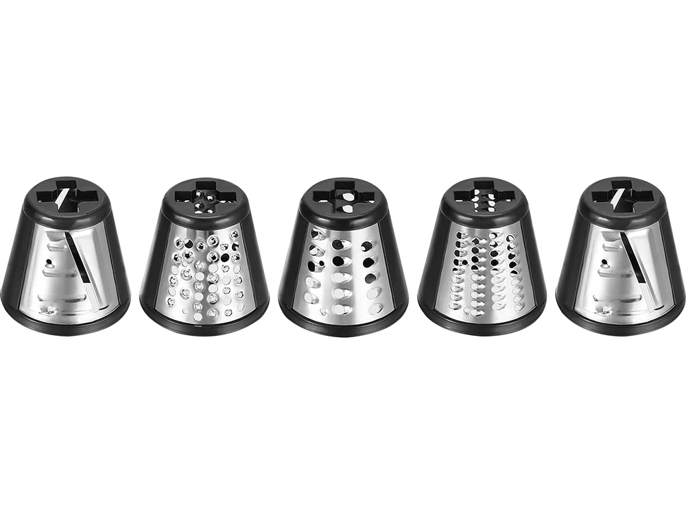 - 5 durable drums with stainless steel blades allow you to adjust the slicing method to the type of dish