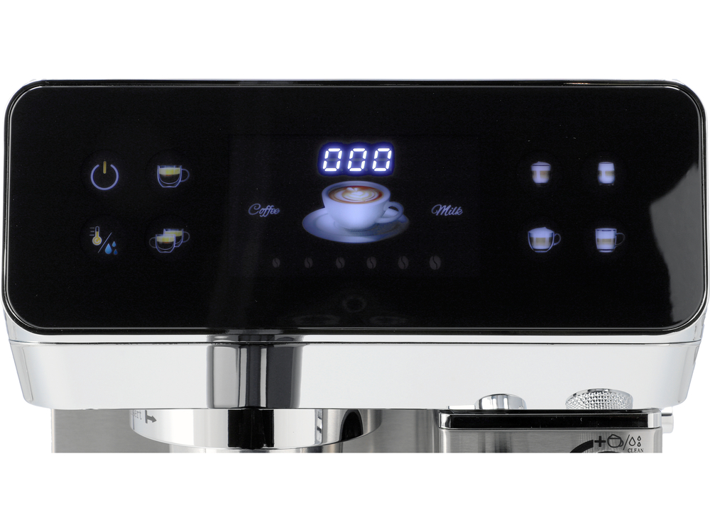 - intuitive touch panel with a modern, colorful display allows for easy selection of beverages and convenient operation with a single touch, showing the brewing time for coffee and steam production