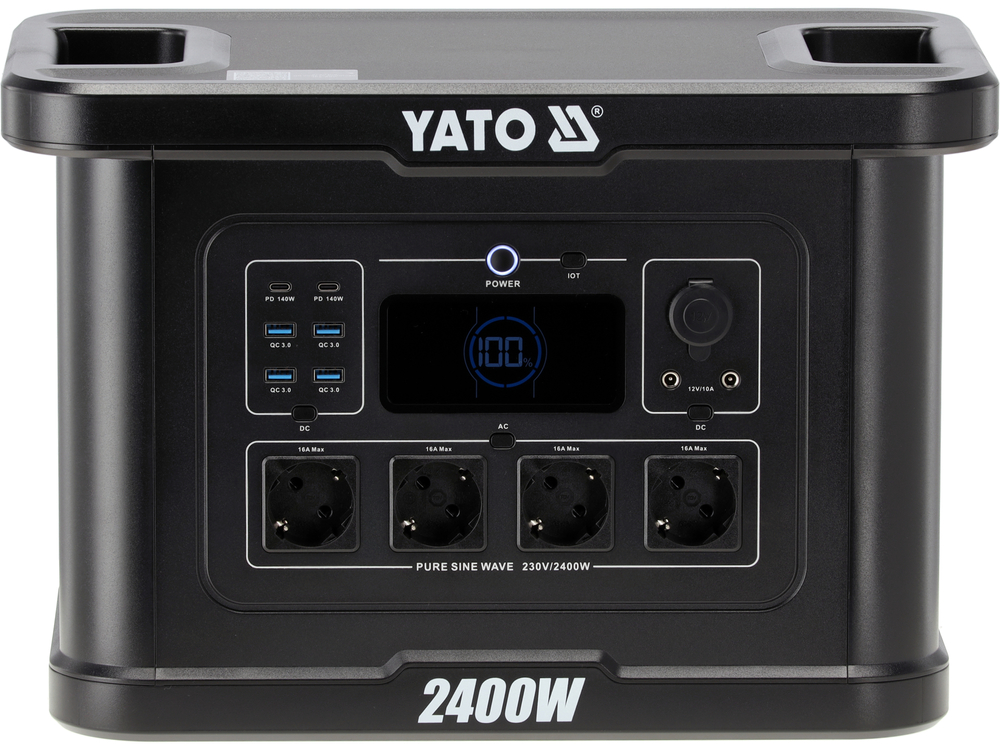 Portable YATO power station with a very large capacity 2232 Wh and power of 2400 W, equipped with a modern LiFePO4 battery, is a reliable and long-lasting source of energy designed for a wide range of applications. The lithium-iron-phosphate technology ensures high cell life, resistance to deep discharges, and stable operating parameters even under prolonged load. Such a large capacity allows for safe power supply for devices with low power consumption, such as lighting or mobile electronics, as well as tools and selected household appliances, without the need for frequent recharging of the station.